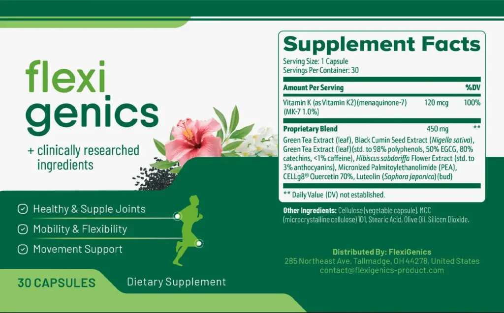 Flexigenics is an innovative dietary supplement designed to support joint health, flexibility, and mobility. It comes in the form of easy-to-swallow vegetable capsules, containing a unique blend of natural and scientifically proven ingredients.