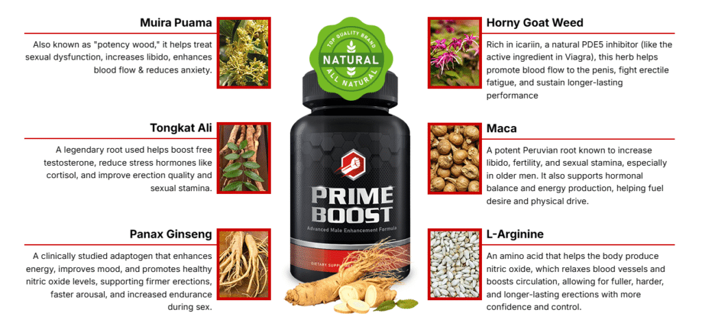 Formulated with a blend of natural ingredients, PrimeBoost helps users feel more energized, active and confident throughout the day. By promoting healthy blood flow and sustained energy, it contributes to more satisfying and lasting performance, making it a reliable solution for those seeking to improve sexual health and general well-being.