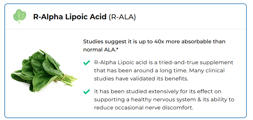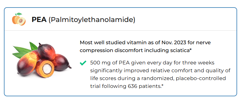 SciatiEase is formulated with a clinically studied mixture of nutrients, including PEA, R-ALA and although